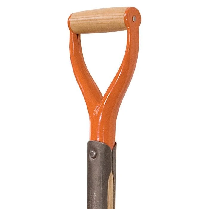 - Plus this classic spade includes these features: a strong, one-piece welded metal D-grip with full-through rivet at grip; single directional rivet holds straps and D-grip, increasing strength; shock-absorbing American Ash handle core; heavy gauge rivets bond metal to wood for unmatched strength; larger turned steps reduce foot fatigue and are compatible with our #AMFP foot pad; blade is beveled to optimum angle to offer sharpness and durability.